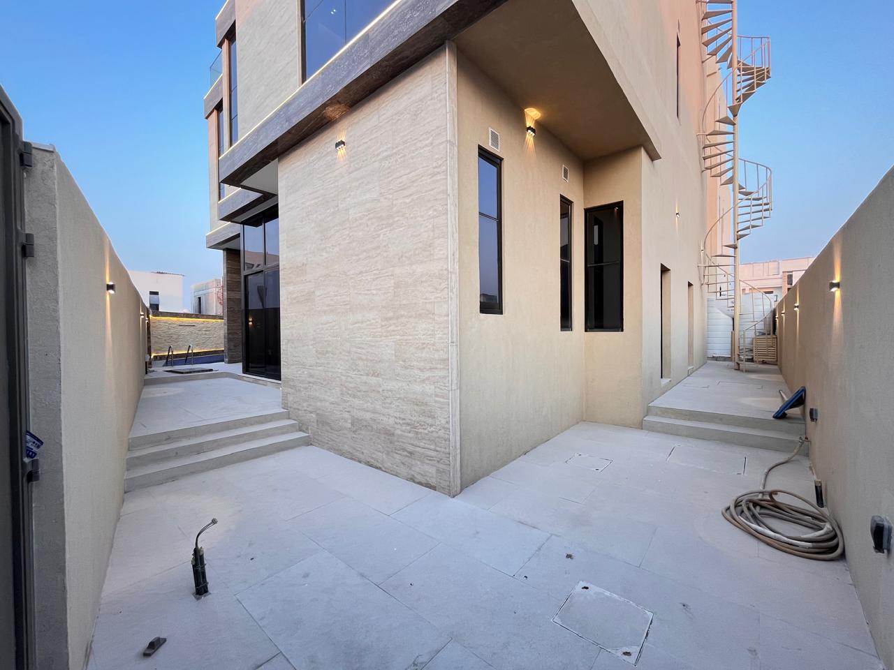 This villa has five sizeable bedrooms with en-suite shower rooms, a large living and dining room, a modern kitchen with premium fittings, and a guest majlis. The other features include a private parking space, a landscaped garden, a spacious terrace, and high-quality finishes throughout the house.
